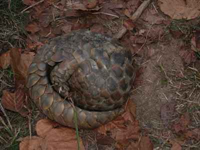 - The Indian Pangolin (Manis crassicaudata ) is an important mammal among the smaller animals of the park. Fire is a major threat to this animal as it kills the animal by burning it and by depriving it of food by destroying termite colonies in the forest.