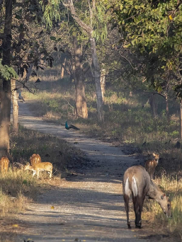Habitat: A 36 km drive in this safari zone is very popular. It takes 3-4 hours to complete the safari. From entry to Mundal Sot track passes through dense sal as well as open Chaur. It is example of mix jungle. Asian Elephant, Tiger, Leopard, Spotted deer, Sambhar, Langoor, Barking deer, Jungle cat etc animal found here. Pied, Great Hornbill also main attraction on this range.
